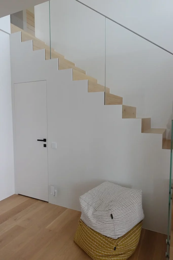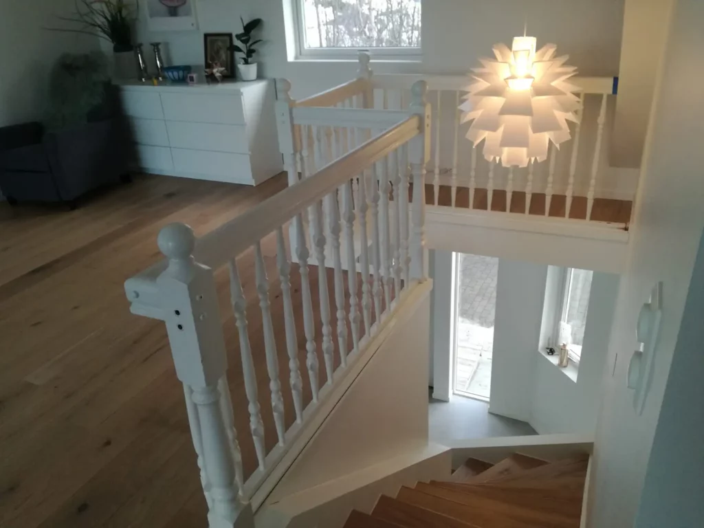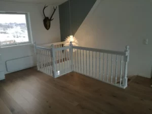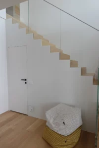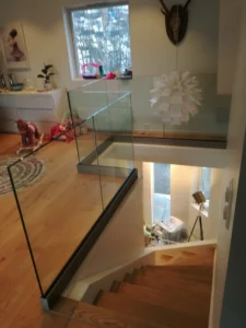 Renovated Stair Hall with Modern Glass Balustrades – Before and after